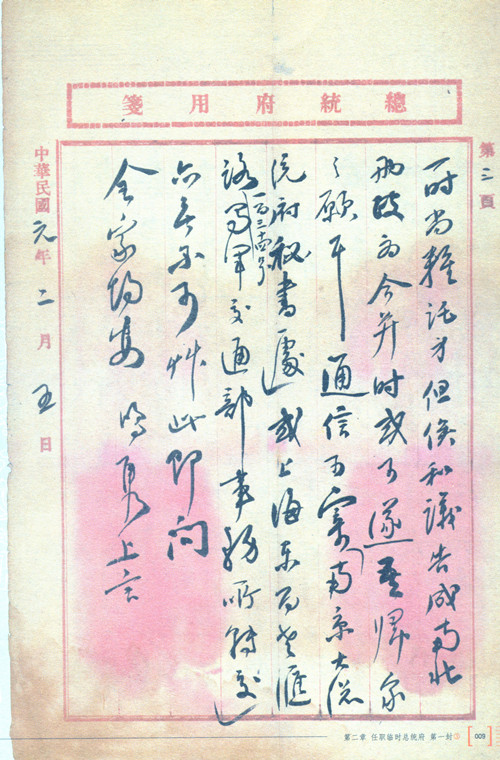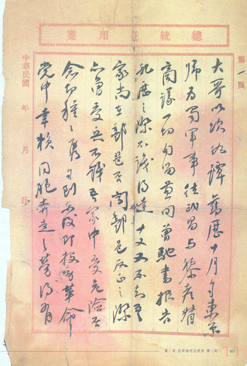 旧历十月自东京归,为蜀军事往武昌与黎都督商议一切,句留黄冈,曾驰书报告,乱历之际,不识得达。□□□不知吾家尚在酆邑否?闻酆邑反正之际,亦曾受兵,不识吾家中受危险否?念切种种。隽自到东后,即投身革命党中,幸赖同胞奔走之劳,得有今日。隽虽归国,诚不敢独偷安逸,遽作归计,故复自汉返沪。适值各省代表公举孙中山先生为临时大总统,先生因约隽到宁,为司秘书,刀笔鞅掌。瞬过一月,不及作书告家,至为歉也。季弟近为蜀军书记,不久当与蜀军同归。隽则一时尚难托身,但俟和议告成,南北两政为合并时,或可遂吾归家之愿耳。通信可寄“南京大总统府书处”,或“上海东百老汇路一百三十四号蜀军交通部事务部转交”亦无不可。