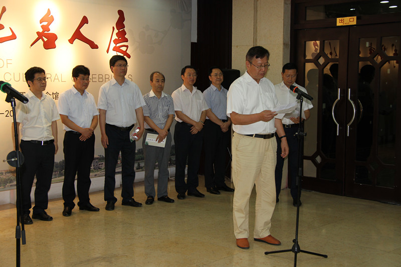 市委统战部副部长、市政府文史馆党组书记李长明在展览开幕式上介绍展览概况