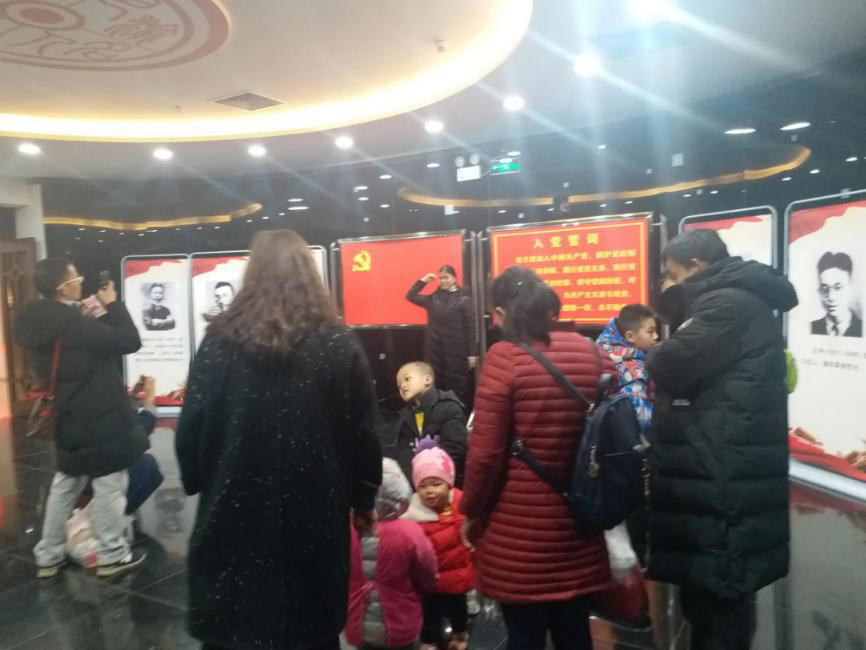 游客在红色展区重温入党誓词