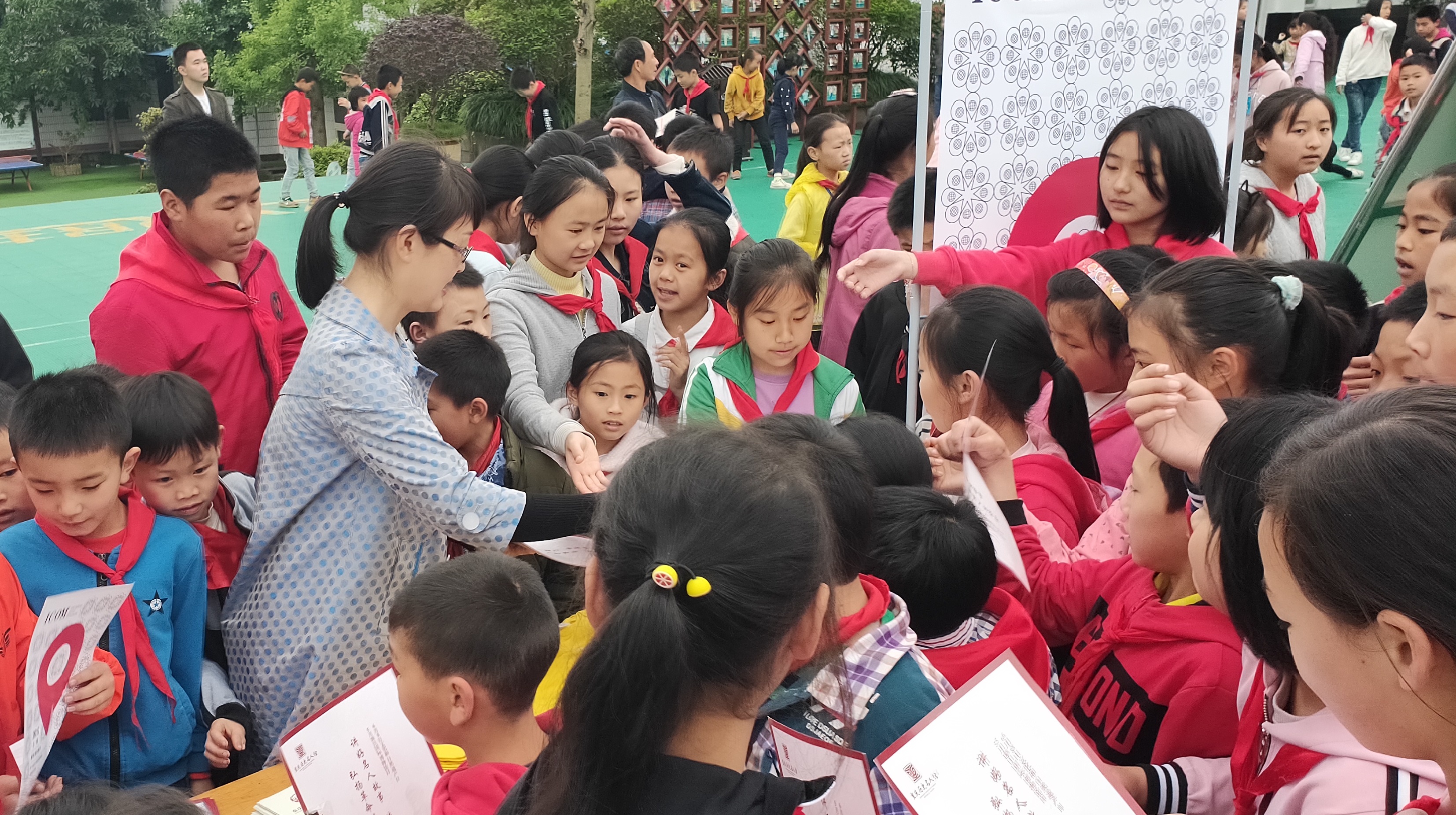 5月21日,“重庆历史名人优秀家庭家教家风巡展暨赠书活动”启动仪式在民主镇中心小学校举行,现场气氛十分热烈。名人馆将《重庆历史名人优秀“家庭、家教、家风”征文选集》送到各村民代表和师生代表手中。学生们聚集在操场,认真观看展览,聆听名人家风故事。现场分发的具有名人馆特色的文创礼品,也受到了村民和学生们的喜爱。