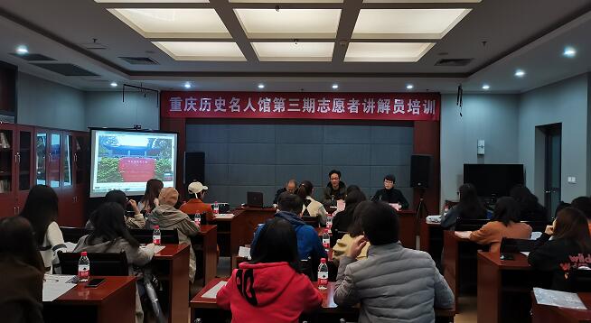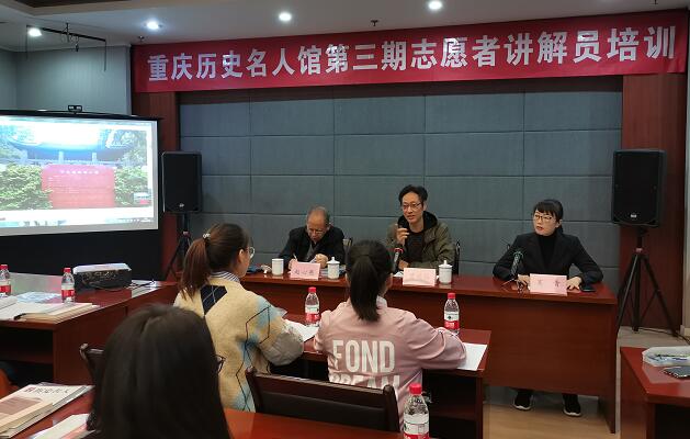 曾建伟馆长在讲话中,向参加培训的志愿者表示欢迎,向大家介绍历史名人和名人文化的内涵、志愿者工作的重要意义,并对志愿者讲解员提出要求。重庆市人民政府文史研究馆馆员、重庆第二师范学院文学与传媒系教授赵心宪,以“历史名人馆建馆的价值导向与参观的现实意义”为题,阐述历史名人馆的价值导向、表现艺术等内容。重庆宋庆龄故居管理处主任、文博副研究馆员王玉茹则从实践经验方面,用具体案例诠释讲解技巧。培训既有丰富的历史文化知识,又有行之有效的讲解经验,令参加培训的志愿者感到收获颇丰,不时报以热烈掌声。