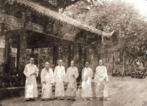 1927年梁漱溟应邀南下广州,途经杭州时与马一浮(左二)、熊十力(左三)会面,留影于灵隐寺。这是“现代新儒家三圣”留存的唯一一张合影。