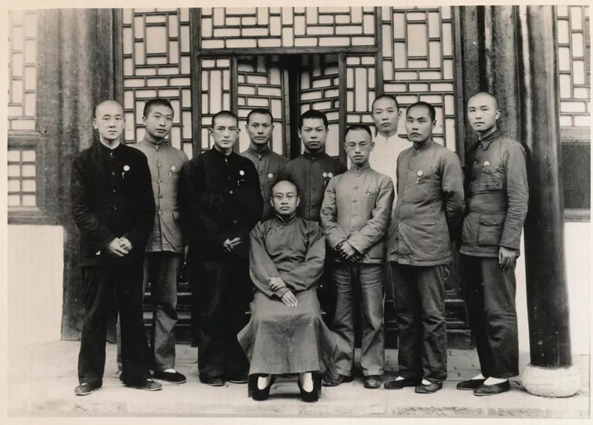 山东乡建研究院分为乡村建设研究部、乡村服务人员训练部和实验县区三部分,另有附属农场、金融流通处、卫生院、师范学校、实验小学等部门。梁漱溟1931年3月—1934年1月任研究部主任,1933年10月起接任研究院院长,直至1937年12月,1934年7月—9月曾一度任邹平实验县县长。图为梁漱溟在山东乡建院时期与工作人员合影。