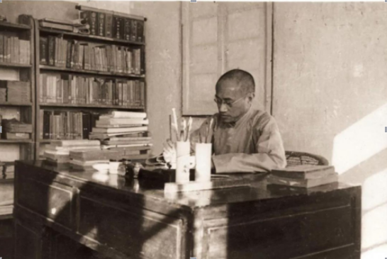 1946年底,国共和谈破裂,梁漱溟辞去秘书长,宣布脱离政治,去重庆北碚创办勉仁文学院,并从事《中国文化要义》的写作。图为1948年梁漱溟在北碚勉仁文学院工作时的留影。