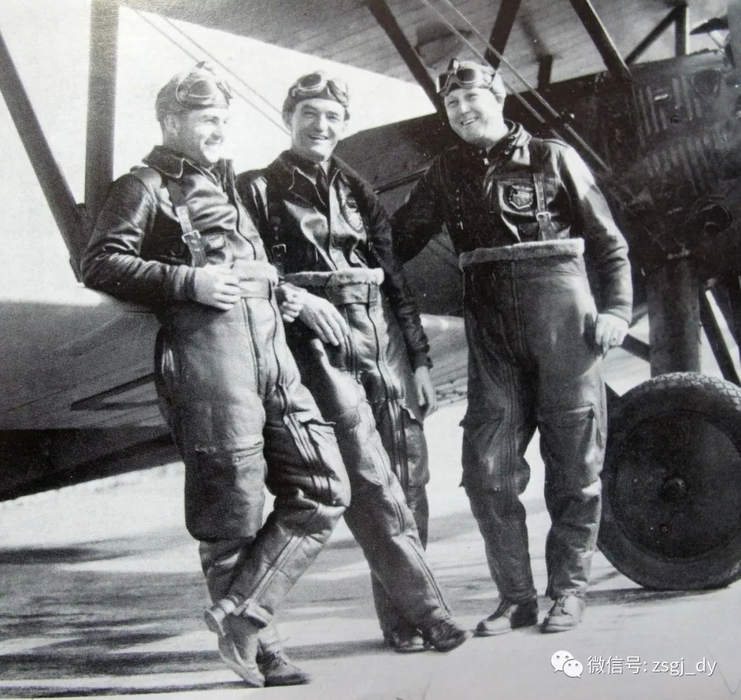 ▲陈纳德(中)与他的两位同事进行战术演练后合影