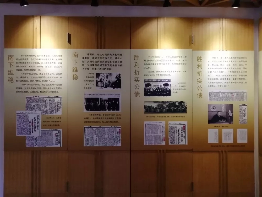 专题展共分为五大板块,分别为:北上参政、南下维稳、胜利折实公债、执掌北大和和平使者。通过珍贵的史料和照片,具体展示了新中国建国初期,马寅初在抑制通货膨胀和恢复国民经济方面作出的重要贡献,真实再现了马寅初爱国爱民、踏实严谨的精神品质,以及波澜壮阔的人生历程。