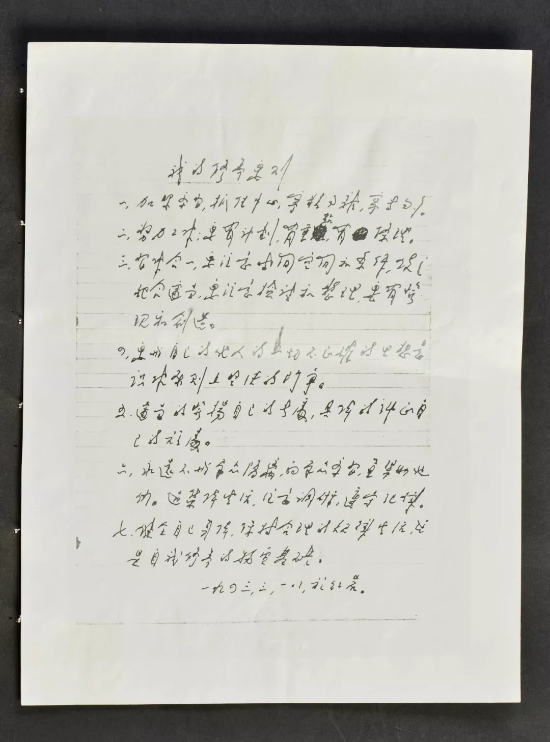 这份周恩来《我的修养要则》,凝重忧远的诚恳态度、斗争策略的深思熟虑、心系群众的急迫心情跃然于眼。为工作,心甘情愿,鞠躬尽瘁;为群众,俯首甘为孺子牛。“永远不与群众脱离,向群众学习,并帮助他们”体现了一名无产阶级革命家,一名共产党人的优良品质,而他这一生,都是这样做的。