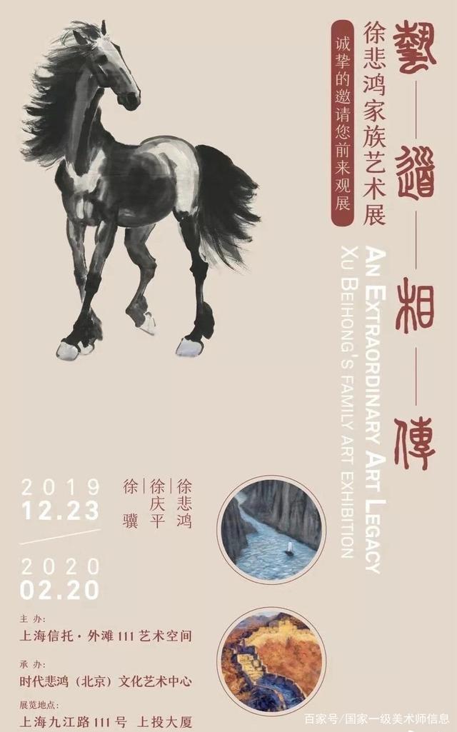 12月23日,在上海信托·外滩111艺术空间开幕的“艺道相传——徐悲鸿家族艺术展”,既代表了100年前曾从这里去往法国、去往更广阔艺术人生的徐悲鸿先生重回故地的心情,也通过展出徐悲鸿先生与其子徐庆平、孙徐骥三代人的艺术创作,向社会大众讲述了“艺道”与“家道”传承的故事。