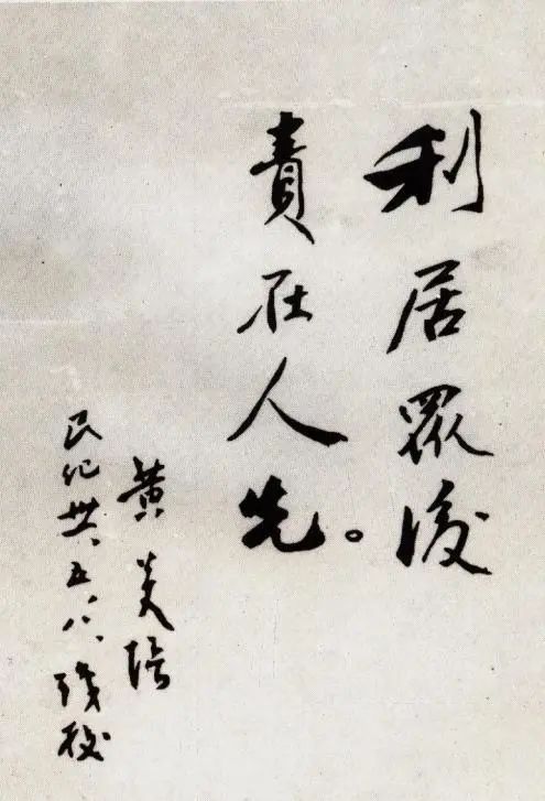 ▲黄炎培题词:利居众后,责在人先