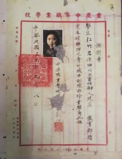 ▲江竹筠入学证明