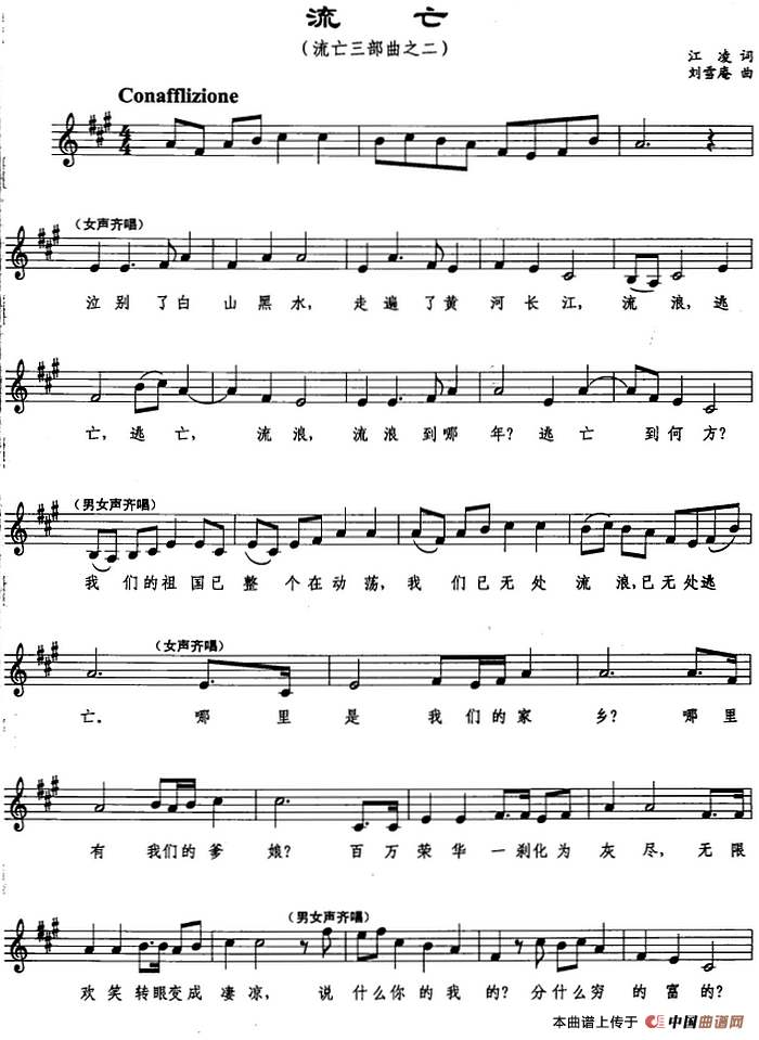 《流亡》曲谱