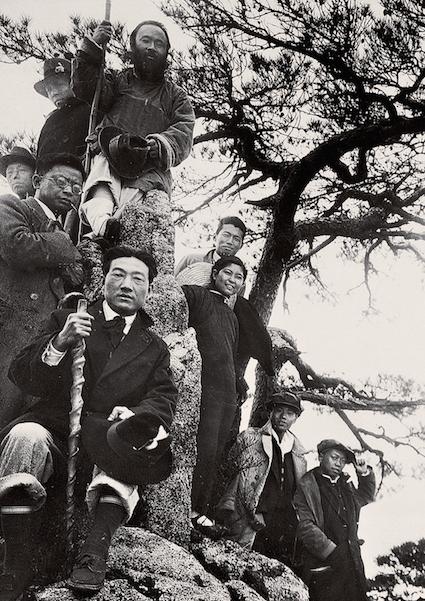 1936年,徐悲鸿带艺术系学生赴黄山写生,巧遇张大千,并合影留念