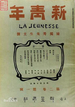 1915年9月15日,陈独秀主编的《青年》杂志创刊(1916年9月1日改名为《新青年》),其发刊词《敬告青年》是一篇向旧思想、旧道德和旧文化宣战的战斗檄文。在这篇战斗檄文中,陈独秀竖起了民主和科学两面大旗,说:“国人而欲脱蒙昧时代,羞为浅化之民也,则急起直追,当以科学与人权并重。”(《陈独秀文章选编》上册,三联书店1984年版,第78页)所谓科学,就是要崇尚理性,尊重事物的发展规律,反对迷信和愚昧;所谓人权就是民主,要提倡个性的解放,摒弃“忠孝节义”的吃人礼教,反对封建伦理道德的专制统治,实现政治、经济、宗教和妇女的解放。他说,为了国家之振兴,社会之进步,必须造就一代“新鲜活泼之青年”,即“新青年”。这种新青年有六条标准,即自主的而非奴隶的,进步的而非保守的,进取的而非退隐的,世界的而非锁国的,实利的而非虚文的,科学的而非想象的。1919年1月,陈独秀在《本志罪案之答辩书》中更加旗帜鲜明地提出:我们要“拥护那德谟克拉西(Democracy)和赛因斯(Science)两位先生”,“只有这两位先生,可以救治中国政治上、道德上、学术上、思想上一切的黑暗”(《陈独秀文章选编》上册,三联书店1984年版,第317、318页)。