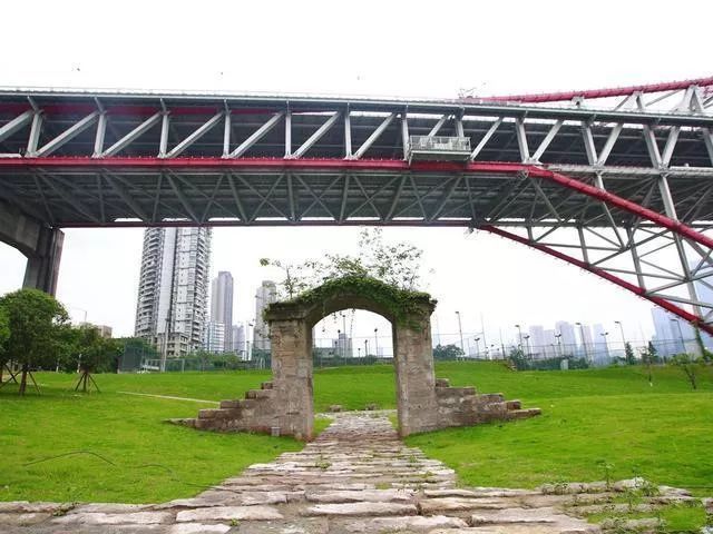 保留在重庆市南岸区南滨路旁的裕华纱厂大门遗址